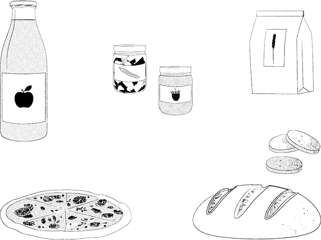 Nos arbres fruitiers nous offrent une abondance de fruits chaque automne qui nous permettent de faire notre délicieux jus pomme- poire-coing. Nous pressons et pasteurisons au pressoir associatif de la Damassine Maison de la Nature et des Vergers ». Ce lieu inspirant porté par une équipe engagée a pour vocation de préserver et valoriser le patrimoine fruitier de sa région. Au fil des saisons nous proposons aussi différents types de boissons avec les parfums saisonniers : sirops de plantes, infusions froides et kéfirs de fruits.FARINES